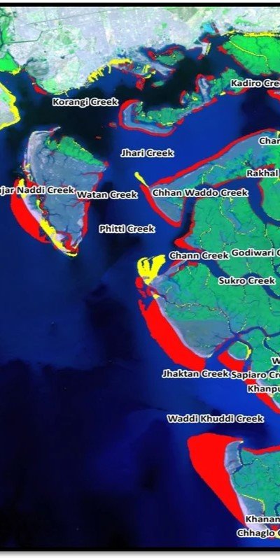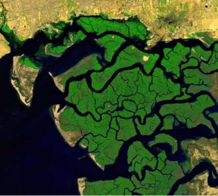 Time-series shoreline change and mangrove health assessment using satellite observations