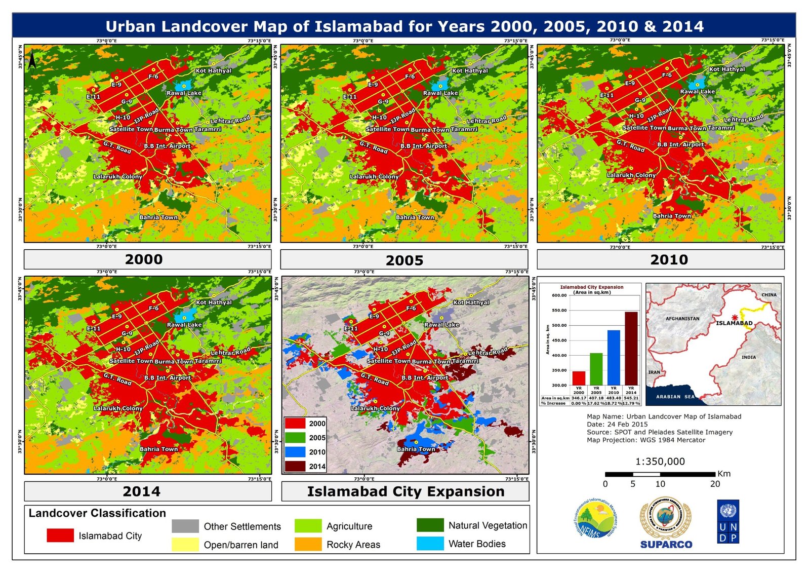 To respond to these challenges, SUPARCO uses satellite-based land cover mapping and agricultural monitoring to assess changes across the country with consistent and repeatable observations. Using multispectral imagery, vegetation indices, seasonal time-series analysis, and modern geospatial technologies; including GIS, remote sensing, and machine learning; SUPARCO provides clear insights into crop health, land degradation, cropping patterns, and expansion or loss of key land cover classes. This information helps guide evidence-based planning, improve resource management, and support climate-smart agriculture.